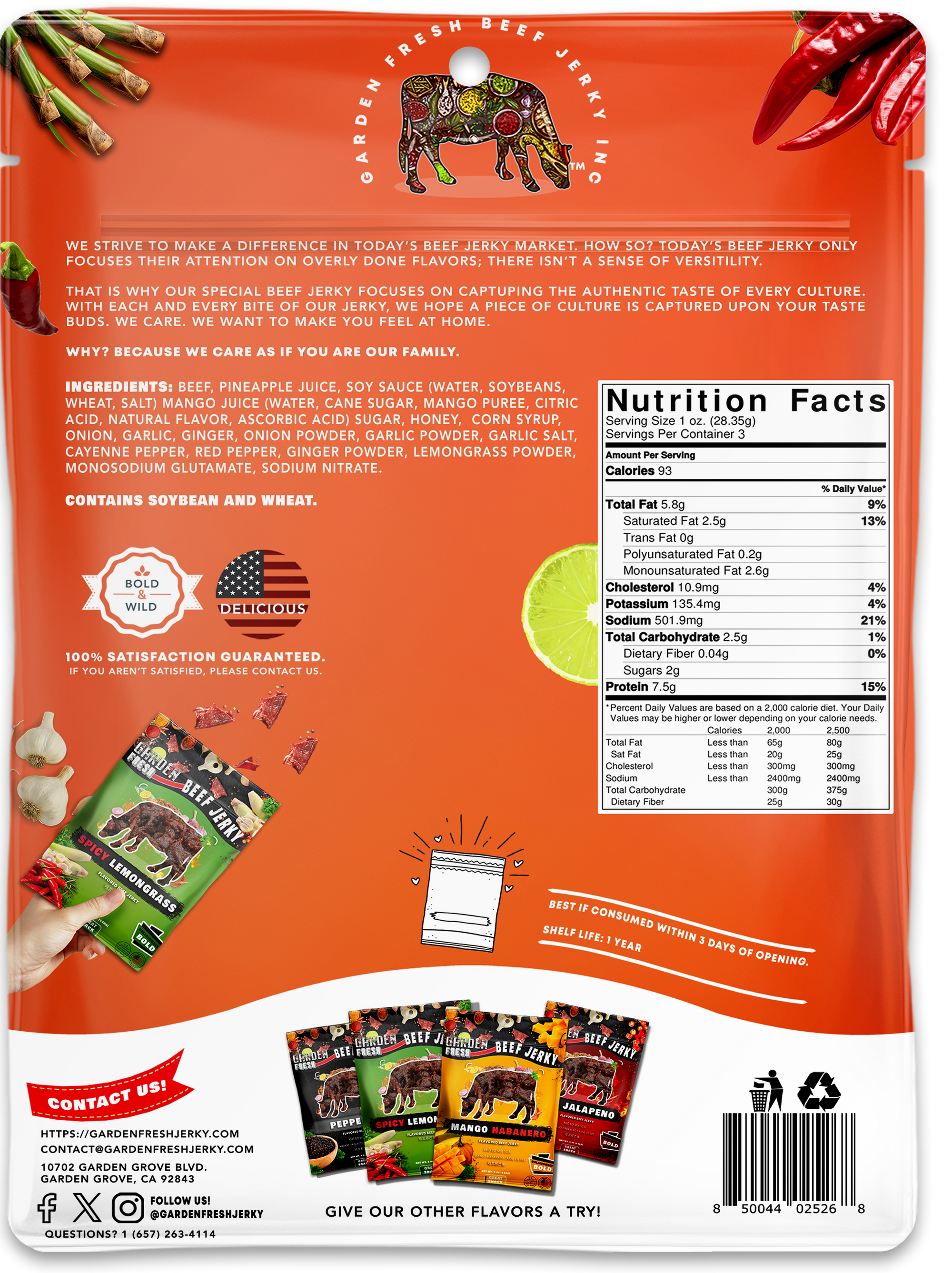 The best of both worlds. Sweet & Spicy. Delicious cuts of jerky drenched in our smoky sweet marinade with a tranquil combination of chilis, building an unforgettable and perfectly balanced flavor profile!